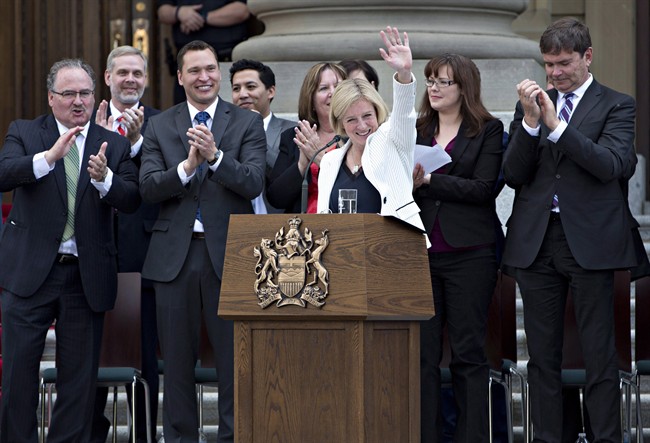 Notley and 11 other New Democrats who make up the 12-member cabinet were sworn in at the Alberta legislature on Sunday.