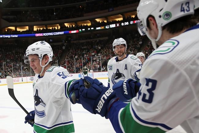 A day after scoring four third-period goals in Buffalo, the Canucks used a three-goal second period to beat Minnesota 4-1 on Sunday. Elias Pettersson helped his team briefly snap out of its power-play funk with his 21st goal and fellow All-Star Jacob Markstom stopped 23 shots.
