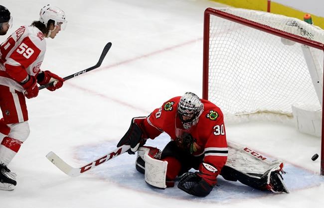 Chicago killed off three power-play chances for Detroit in the second but was unable to put much pressure on Mrazek. The Red Wings then iced the game when Mantha pounced on a pass from Zetterberg and shot it by Glass’ right shoulder from the right circle for a 3-0 lead at 5:46 of the third.