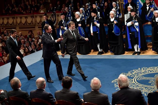 European Parliament President Antonio Tajani and European Commission President Jean-Claude Juncker are in the northern Spanish city of Oviedo to receive a prestigious Princess of Asturias prize on behalf of the European Union.