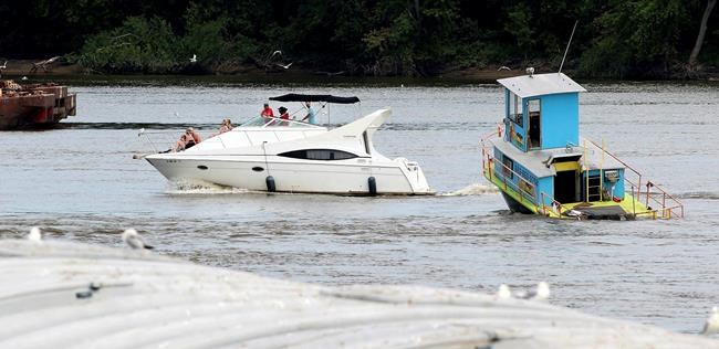 The boat remains partially submerged in the river. A U.S. Coast Guard spokesman said the owners are responsible for removing the boat from the water.