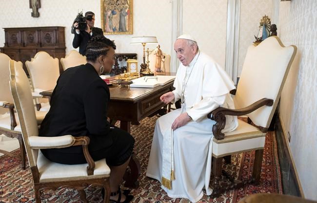 A video of the meeting provided by the Vatican showed a smiling King greeting the pontiff, then speaking briefly through a translator, but no audio was provided. She tweeted after that the meeting was “#lifechanging.”