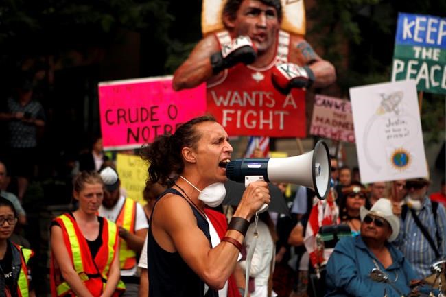 Several hundred pot-banging, whistle-blowing pipeline protesters gathered outside the Vancouver Island Conference Centre where Trudeau and his ministers were holed up for a cabinet retreat amid the acrid smell of smoke from the hundreds of wildfires burning across British Columbia.