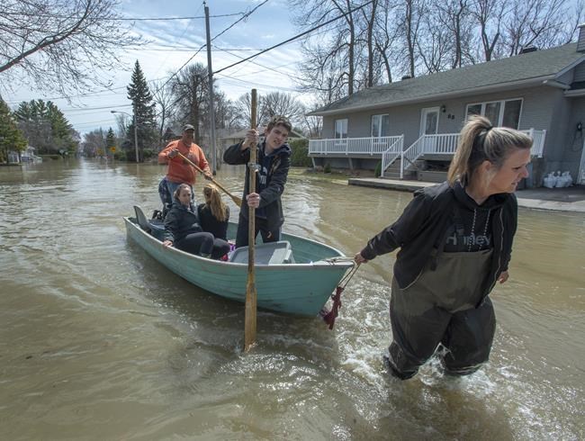 Thousands of people have been forced from their homes, including 9,500 in Quebec — two-thirds of them in Ste-Marthe-sur-le-Lac, west of Montreal, after fleeing water from the Lake of Two Mountains that burst through a natural dike Saturday — and more are being urged to leave before water cuts them off from help.