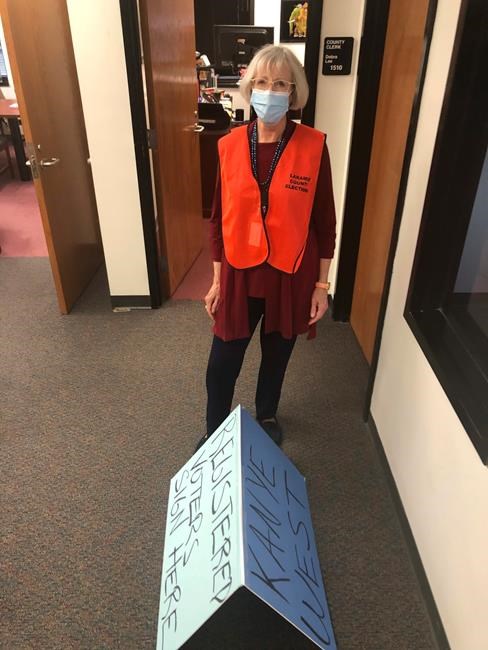 Election officials at Laramie County Community College confiscated a handwritten sign that read “registered voters sign here” on one side and “Kanye West” on the other, potentially causing people to falsely believe they needed to sign West’s petition in order to vote, Lee said.
