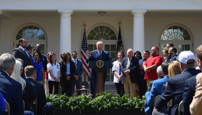 “We’re going to discuss our massive tax cuts that are growing paychecks all over our country,” Trump said in the White House Rose Garden, where he was joined by more than 100 workers and executives from companies that have benefited as magnolia petals floated by in the spring breeze.