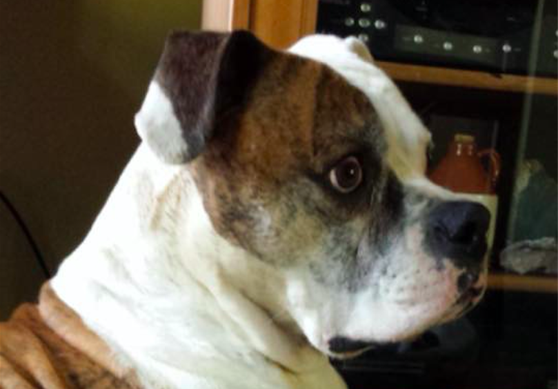 Foster says he’s not sure of the dog’s breed, but says it looks like a cross between a boxer and a pitbull.
