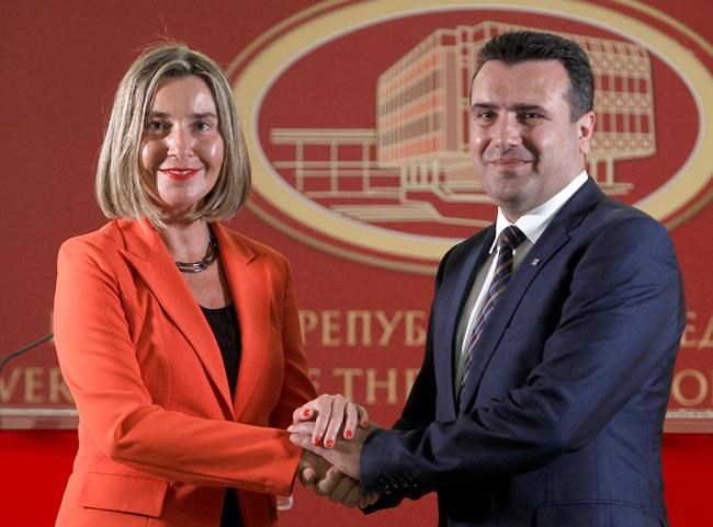 SKOPJE, Macedonia – The European Union’s foreign policy chief says she believes Greece and Macedonia can overcome a long-standing name dispute by late June, clearing the way for the Balkan nation to start accession talks.