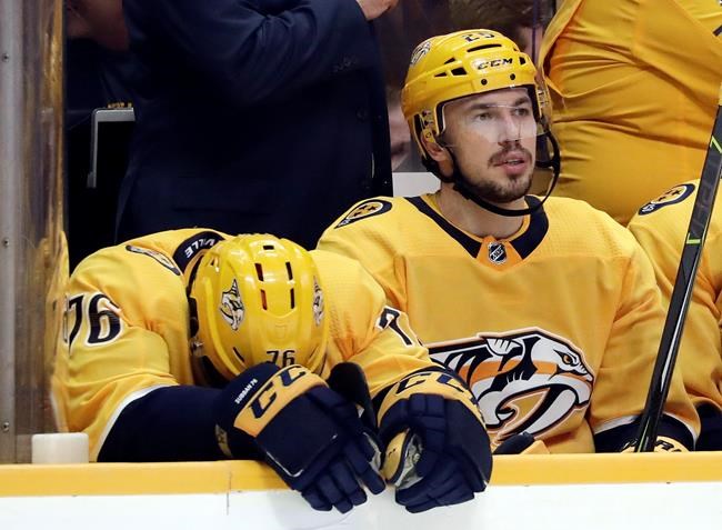 Hellebuyck, also in the running for the Vezina as the league’s top regular-season goalie, made a couple of big stops early, but Nashville responded on its second power play at 15:54 when Subban one-timed his fourth of the series, and fourth of the playoffs.