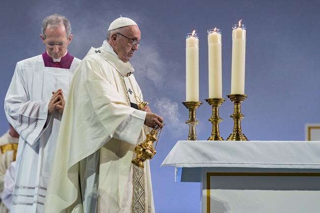 Francis, 81, then walked out in procession, following other clergy, from the arena.