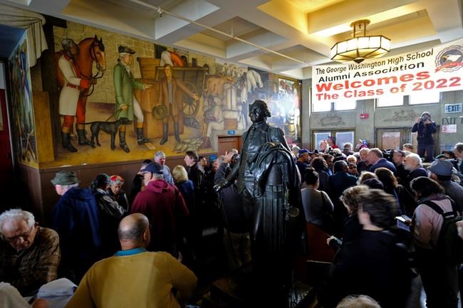 After a public outcry, the board voted 4-3 to reverse its June vote to paint over the “Life of Washington” mural at George Washington High School. Instead, staff were directed to work out alternatives to cover the mural with panels or other materials depicting “the heroism of people of colour in America” and their fight against racism and poverty, said board President Stevon Cook, who made the proposal.