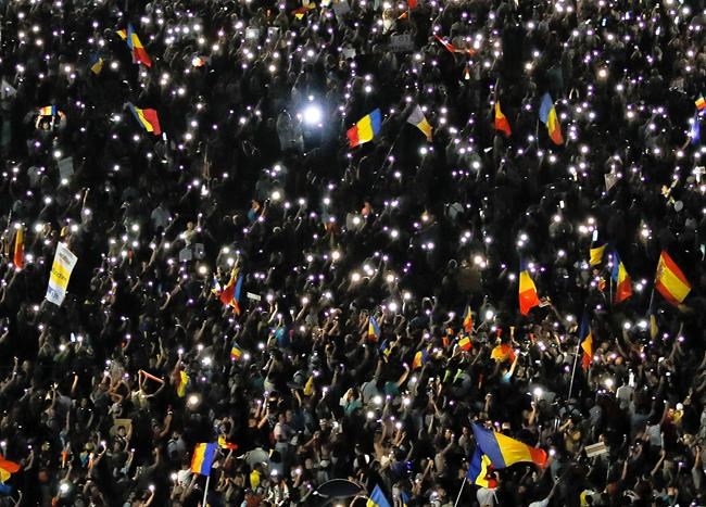 BUCHAREST, Romania – Thousands of Romanians have gathered for the third consecutive evening to demand the resignation of the government.