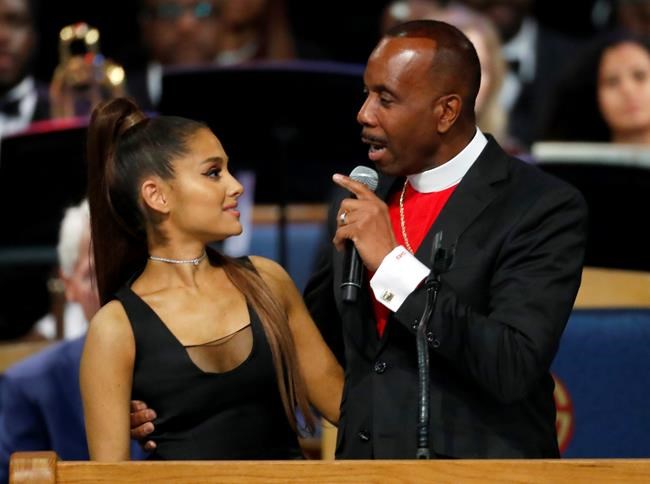 DETROIT – The bishop who officiated Aretha Franklin’s funeral has apologized to Ariana Grande for how he touched her onstage and a joke he made about her name.