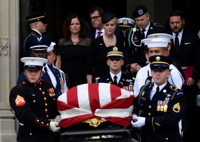 “This week’s celebration of the life and values and patriotism of this hero, I think have taken our country above all that,” said former Sen. Joe Lieberman, considered by McCain as a running mate in 2008. McCain instead chose former Alaska Gov. Sarah Palin. But she, a populist firebrand with similarities to Trump, was not invited to any of the services.