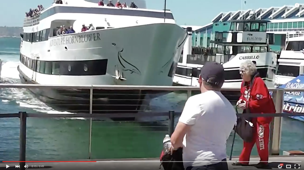 It appears no one was badly hurt when the whale watching ship Adventure Hornblower crashed into a San Diego dock on the weekend.