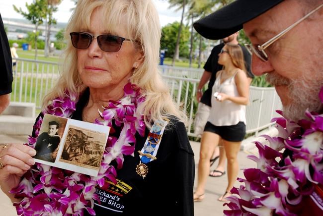 Dianne Hall of Salisbury, North Carolina, handed over the flag in a ceremony nearly 75 years after the Dec. 7, 1941, attack that launched the U.S. into World War II.