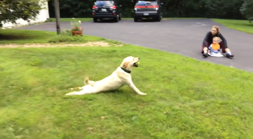 She just likes to cool off a bit in the grass as she comes to a halt.