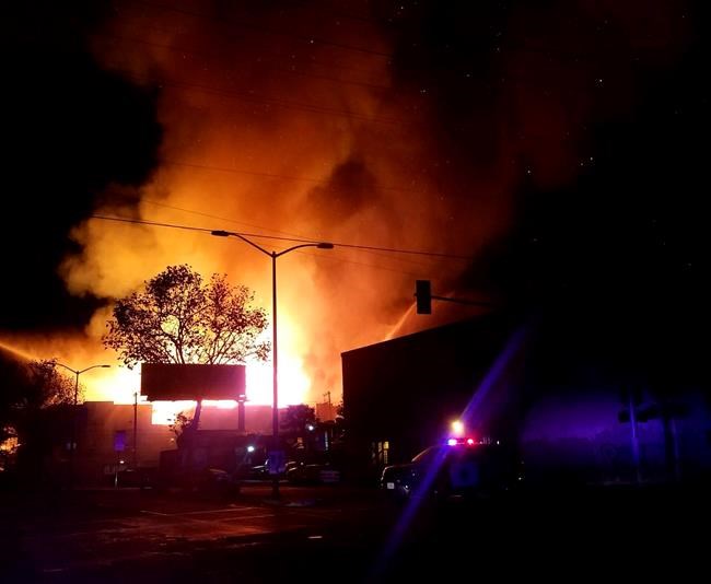 SAN FRANCISCO – A massive fire on Tuesday engulfed an Oakland apartment complex under construction and destroyed four buildings in the latest of a series of blazes at large residential buildings in a city struggling with a housing shortage. A firefighter also suffered a leg injury but the extent of the injury was not known.