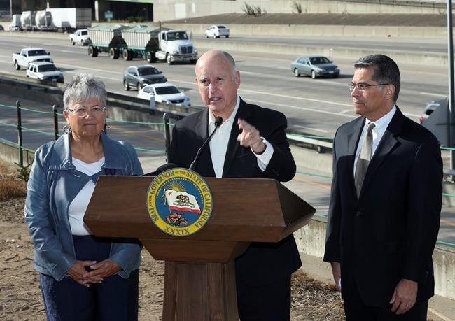 “Foolishly, it mandates gas guzzlers instead of clean and zero-emission vehicles,” Brown told reporters as trucks and passenger traffic roared past. “Wrong way to go, Donald. Get with it. Bad.”