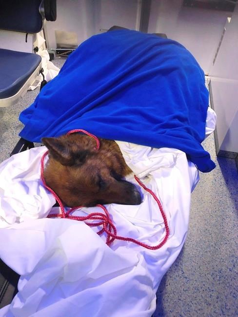 First responders determined the 8-year-old dog was badly injured and suffering from hypothermia, so they drove her to an animal hospital where she was treated for multiple fractures and internal bleeding.
