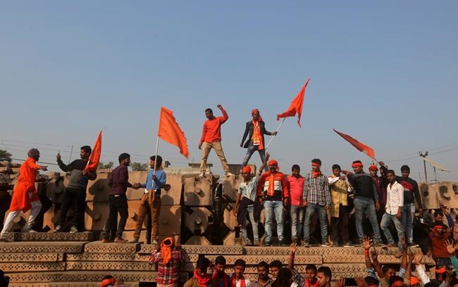 LUCKNOW, India – Tens of thousands of hard-line Hindus rallied Sunday to demand a Hindu temple be built on a site in northern India where hard-liners in 1992 had attacked and demolished a 16th century mosque, sparking deadly Hindu-Muslim violence.