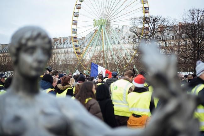 Much of France, but particularly Paris, has endured weeks of protests that at times descended into violence. Ten people have died since the start of the yellow vest movement in November, mostly in traffic accidents. French media said a man died Friday night near the southern city of Perpignan after his car slammed into a truck that had stopped near a group of protesters.