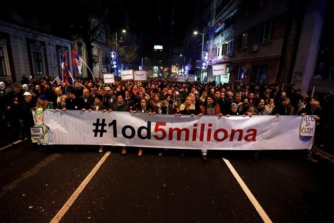 BELGRADE, Serbia – Thousands of people have rallied in Serbia, the latest protest accusing populist President Aleksandar Vucic of stifling hard-won democratic freedoms and cracking down on opponents.