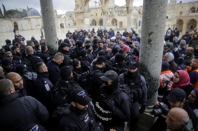 Firas Dibs, a spokesman for the Islamic authority that oversees the site, says dozens of worshippers scuffled with police after the guards closed the doors to the mosque and barricaded themselves inside. He says the director of the mosque was lightly wounded.