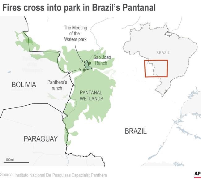 RIO DE JANEIRO – Wildfire has infiltrated a Brazilian state park known for its population of jaguars as firefighters, environmentalists and ranchers in the world’s largest tropical wetlands region struggle to smother record blazes.