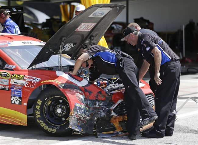 Those two cars then spun into Martin Truex Jr., and the scrum was hit by Denny Hamlin. Also caught up in the crash was Carl Edwards, as Joe Gibbs Racing had three cars involved in the crash and 10 total drivers had to pull out their backup cars.
