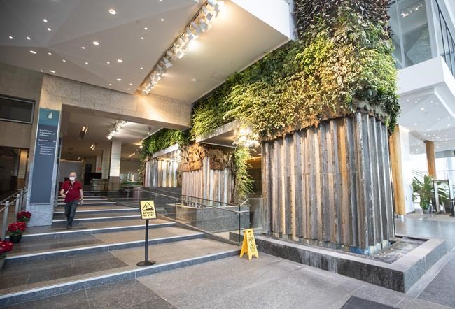 EDMONTON – The ivy and tropical plants spread across a living wall in the lobby of a landmark Alberta government building are being cut down earlier than planned because of a bug infestation.