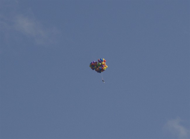 That’s how a Calgary man describes flying over the city in a lawn chair attached to helium balloons and then parachuting to safety.