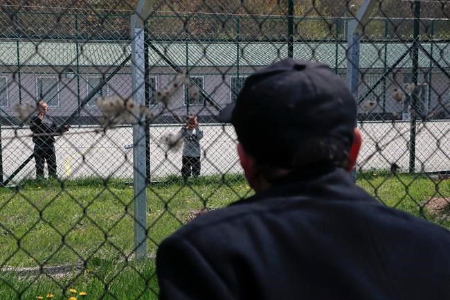 Three children were seen playing football inside the shelter, well-protected by special police force surrounding its perimeter.