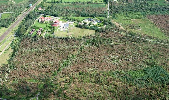 Footage on TVN24 showed images of huge areas covered with trees lying like matchsticks. Weather forecasts warned Wednesday of more storms coming.