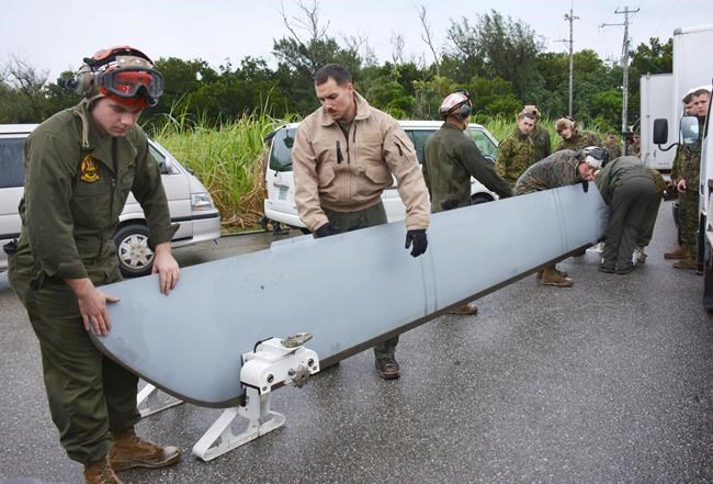 TOKYO – U.S. military personnel appeared to remove part of the main rotor from a Marine Corps helicopter Sunday, one day after it made an emergency landing on a beach in Japan’s southern Okinawa islands.