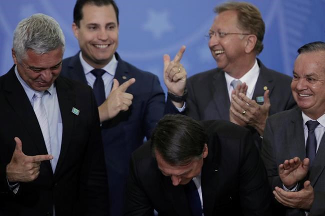 Bolsonaro signed the presidential decree surrounded by supporting lawmakers who applauded and made finger-gun gestures with their hands. It alters a 2003 law on firearms.