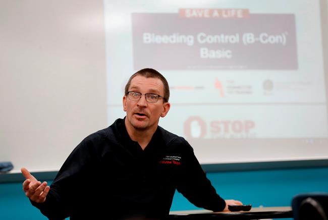 “It takes a long time, longer than it takes to bleed to death, to clear the classroom, secure it and make sure there’s not another shooter,” he said. “The person who is going to save you is the person right beside you.”