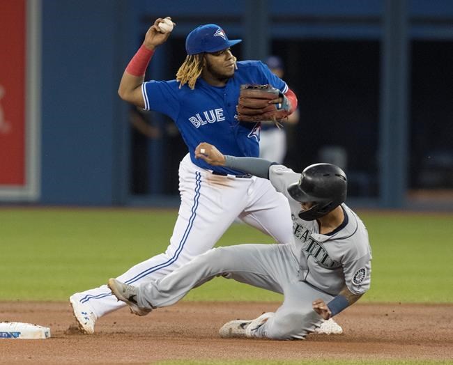 TORONTO – Hot-hitting rookie Vladimir Guerrero Jr. left the Toronto Blue Jays game after two innings with left-knee discomfort against the Seattle Mariners on Saturday afternoon.
