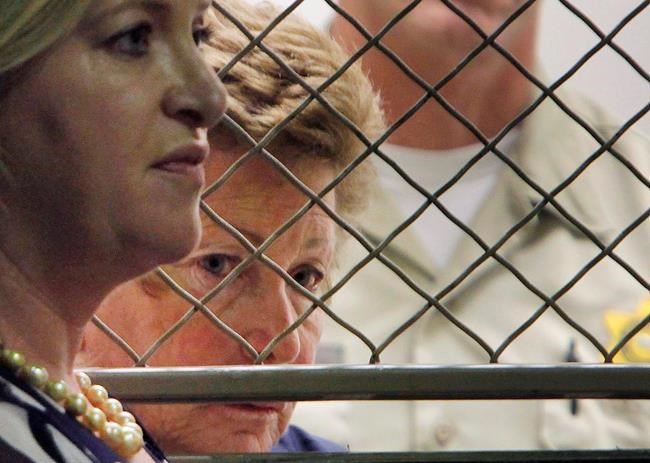 Police said Goodman bludgeoned her husband with a coffee mug. Her lawyers say the 80-year-old tripped and fell down stairs while she wasn’t home.