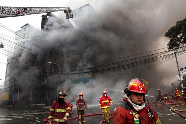 The fire broke out Thursday afternoon and leaden clouds of smoke continued to fill the air just 15 blocks from Peru’s presidential palace 20 hours later.