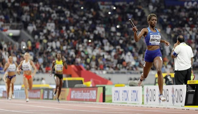 The U.S. took the lead on the opening leg with Phyllis Francis, stretched the advantage with hurdlers Sydney McLaughlin and Dalilah Muhammad, before Wadeline Jonathas brought the win home in 3 minutes 18.92 seconds.