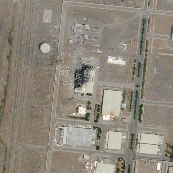 A new satellite photo released Monday by Planet Labs Inc. showed extensive damage to the centrifuge facility. The image, taken Sunday, shows the roof apparently torn away by the blast and debris scattered across the ground.