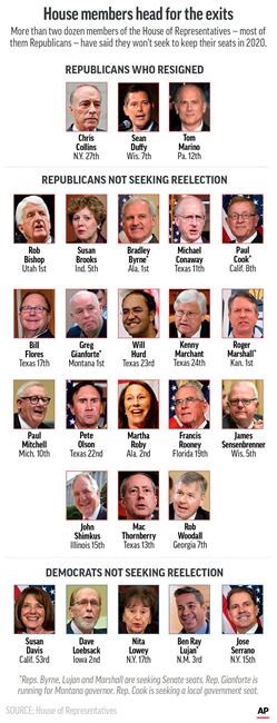 —The number of Republican House members not standing for reelection next year now totals 21, including three resignations and 18 retirements.