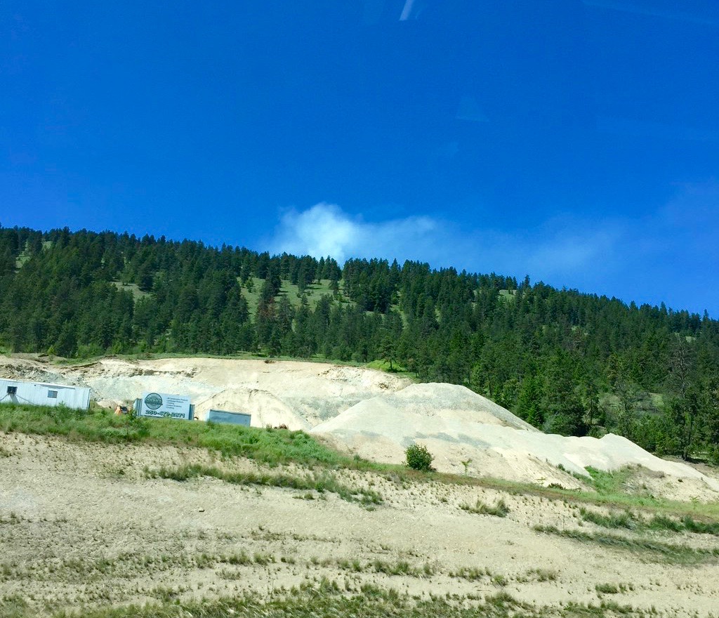 The plume of smoke from the blaze is highly visible from Highway 97.