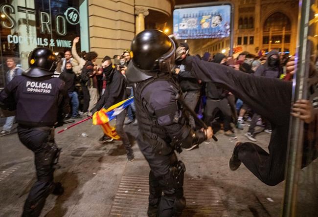 BARCELONA, Spain – Police and violent protesters in Spain’s restive Catalonia region clashed Saturday after a massive rally in Barcelona against the imprisonment of nine separatist leaders for their roles in an illegal 2017 secession bid.