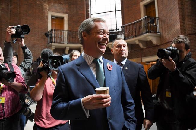 LONDON – Britain’s election campaign heated up Sunday with Prime Minister Boris Johnson saying he would apologize to Conservatives for failing to take the U.K. out of the European Union by Oct. 31 and Brexit Party leader Nigel Farage saying he won’t personally run for a seat in Parliament.