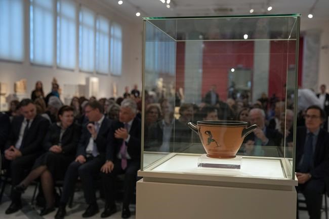 Greece’s Culture Ministry said Wednesday that the 6th century B.C. pottery vessel was considered lost for decades until research in 2014 by archaeologist Giorgos Kavvadias identified it in the University of Muenster’s collections.