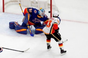 “I liked how we played the game tonight,” Vancouver coach Travis Green said. “It’s easy to talk about the third because we didn’t play very well, but (Markstrom) was great tonight. I’m happy for him. He made some huge saves, especially on the penalty kill.”