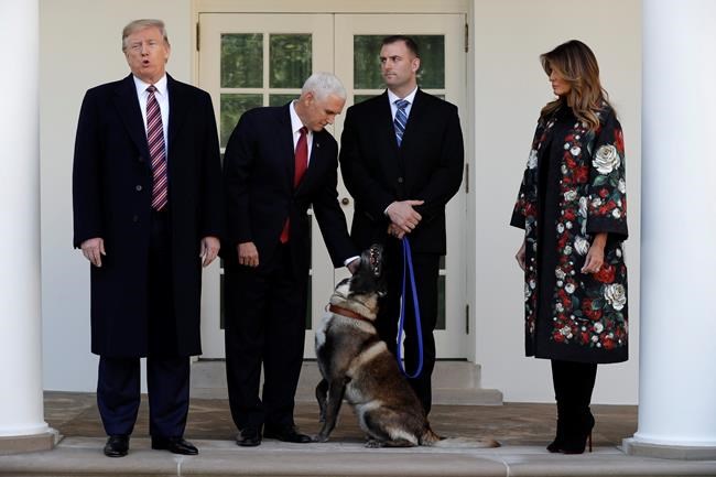 WASHINGTON – A U.S. military dog that played a starring role in the raid that killed Islamic State leader Abu Bakr al-Baghdadi seemed oblivious to the praise that President Donald Trump heaped on it Monday at the White House.