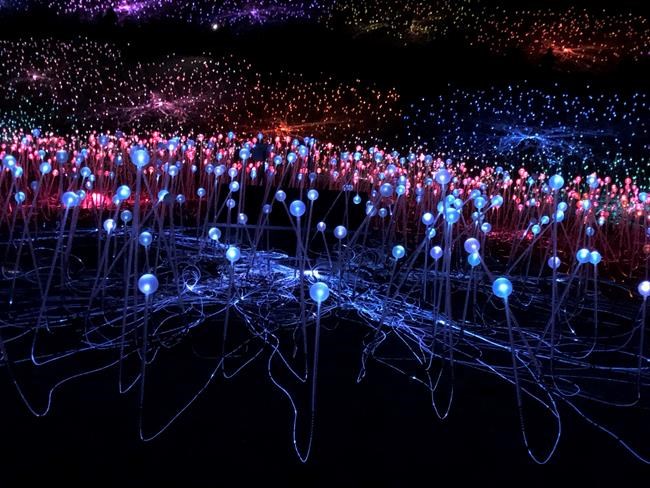 Munro’s “Field of Light” works vary in appearance from sculptures to garden rooms to everyday objects that reflect light. His most famous, at least until now, is likely “Field of Light at Uluru,” located in the red rock desert of Australia, a region considered sacred to the aboriginal people.